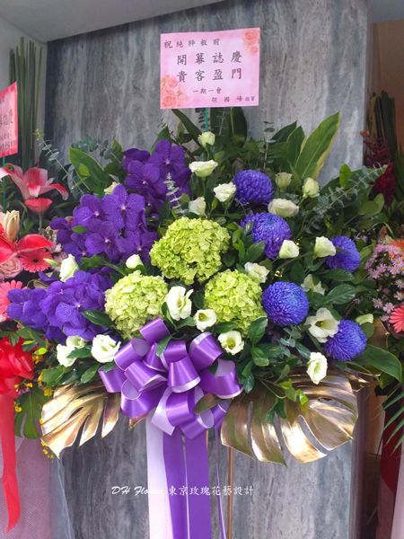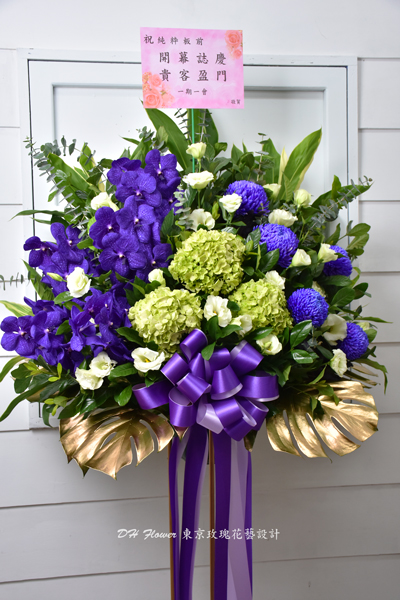 《 使用花材 》主花~紫牡丹菊,綠繡球花,紫巨輪千代蘭, 配花~ 綠桔梗,尤加利葉